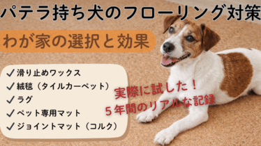 健康&予防 パテラ持ち犬のフローリング対策5選|滑り止め方法を徹底比較 パテラ持ち犬にフローリングは危険?滑り止めワックス・ラグ・絨毯・コルクマット・ペット専用マットを実体験で徹底比較!わが家が最終的に選んだ床対策も正直に解説します。 2026.02.23 健康&予防