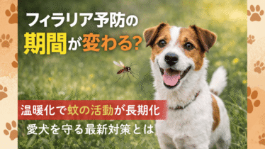 健康&予防 愛犬のフィラリア予防はいつからいつまで?温暖化で蚊の活動が変化【最新対策】 暖冬・猛暑・季節のズレ...そんな「異常気象」が毎年話題になる今、犬の健康管理で特に重要なのがフィラリア症の予防です。近年の温暖化や異常気象の影響により、蚊の活動時期が長期化。そのため、愛犬のフィラリア予防期間は、往来の期間よりも延長する傾... 2026.01.12 健康&予防悩み・トラブルを解決!愛犬お役立ちラボ犬ライフ(健康・しつけ・グッズ)
