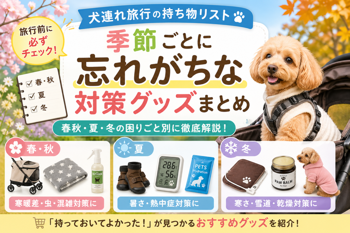 この記事では、一般的な持ち物ではなく、犬連れ旅行で忘れがちな季節対策グッズを春秋・夏・冬に分けて紹介します。