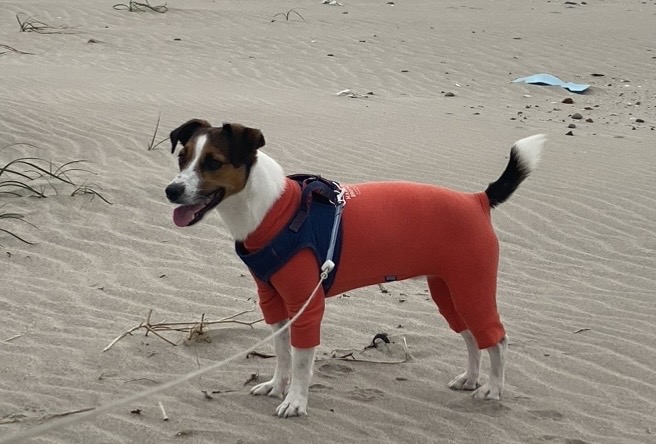 わが家では、3着色違いで愛用しています。伸縮性が高くて着脱させやすく、服が苦手なサムでもあまり気にせず着られています。