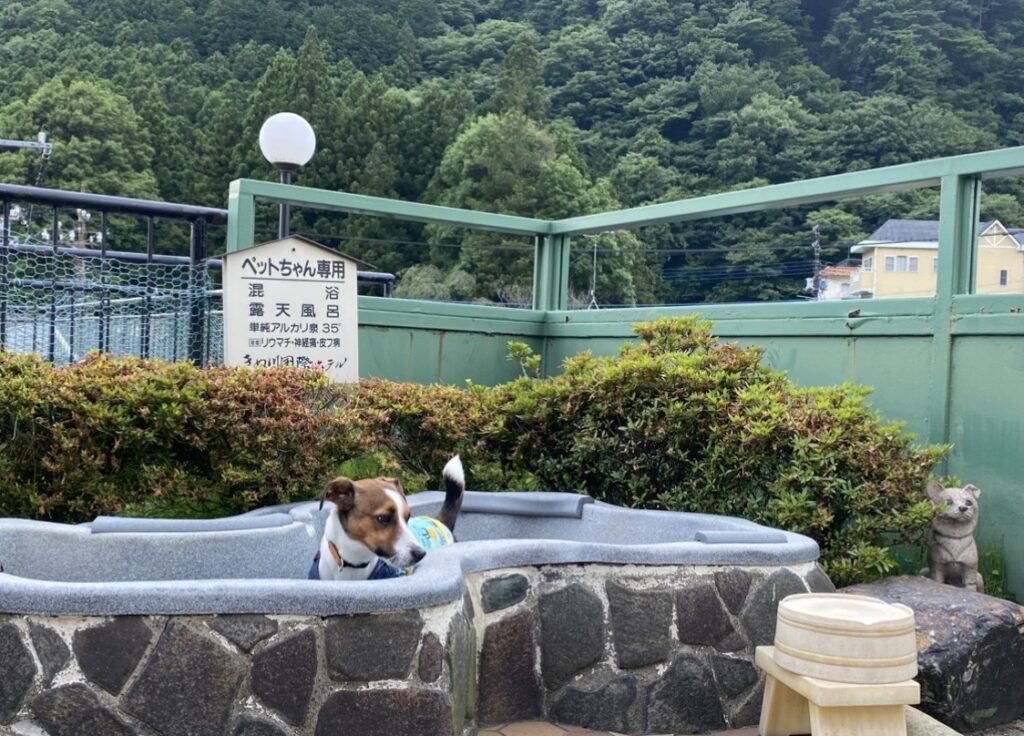 温泉の犬専用足湯もあり、のんびりできるスペースも。
