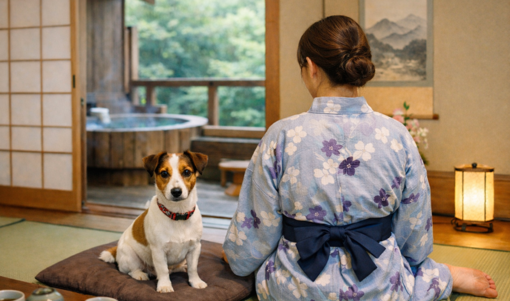 自然に囲まれたこの温泉地には、ペット専用の客室を備えた宿もあります。