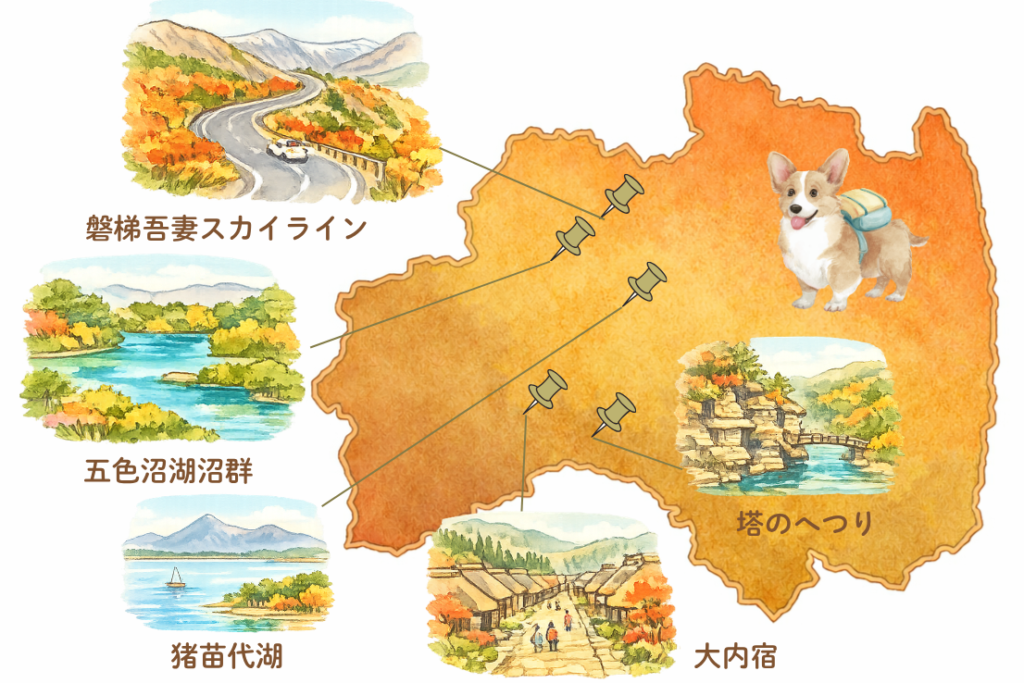 福島の犬連れで行きやすい紅葉ドライブ旅を、実体験ベースでまとめました。