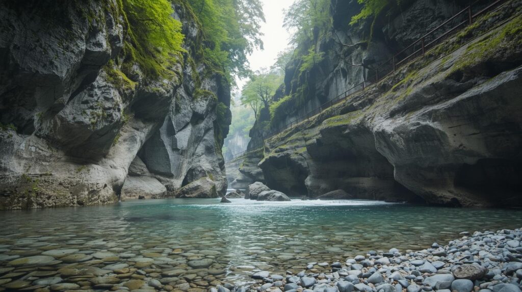 磐井川中流に位置し、美しい渓谷の景観とダイナミックな滝が魅力。