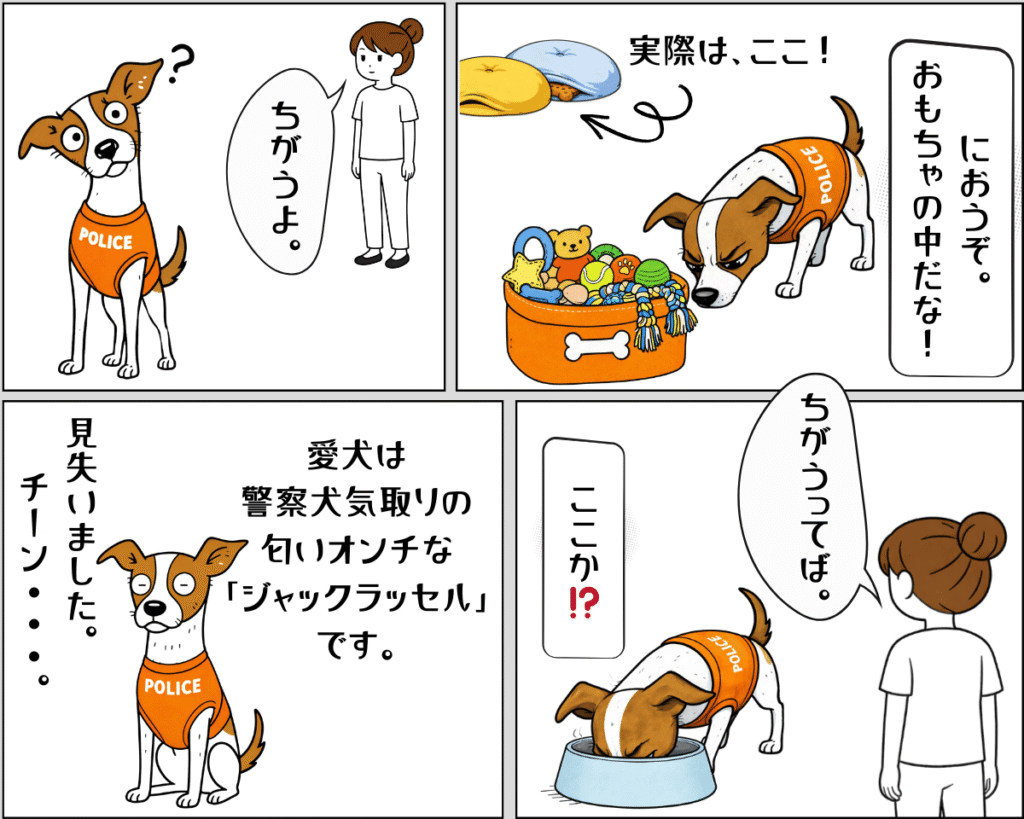 飼い主が「大好きなおやつ」を隠して、匂いをかぎ分けながら探す遊びをするのですが。
