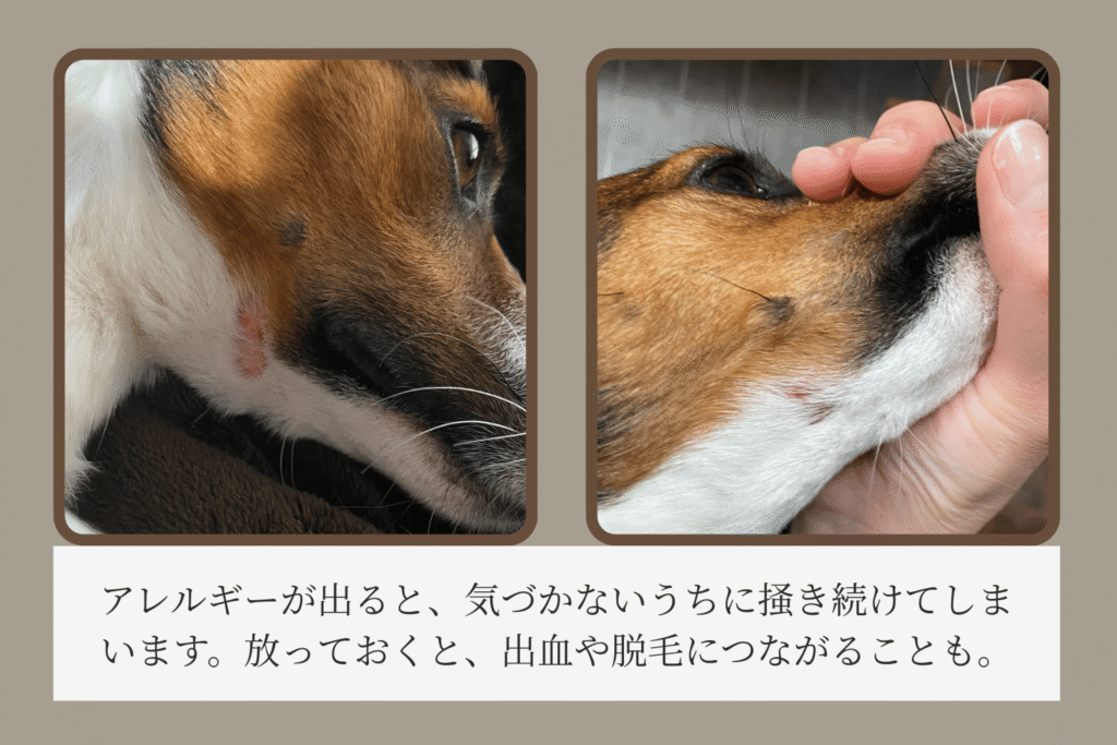 アレルギー症状(カイカイで掻きこわす)が出やすいため、
