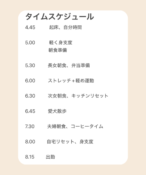 私も今では朝のルーティンがある程度習慣化されており、そこまでバタバタしなくなりました。