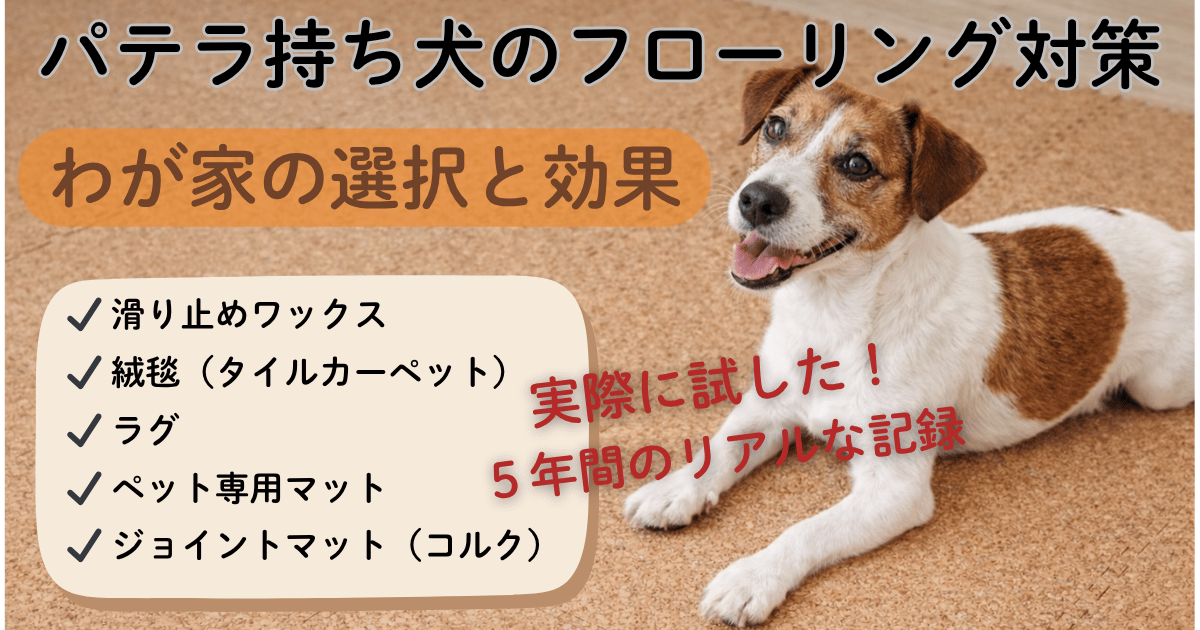 この記事では、パテラ持ち犬のフローリング対策として考えられる5つの方法を比較し、それぞれのメリット・デメリットをまとめます。