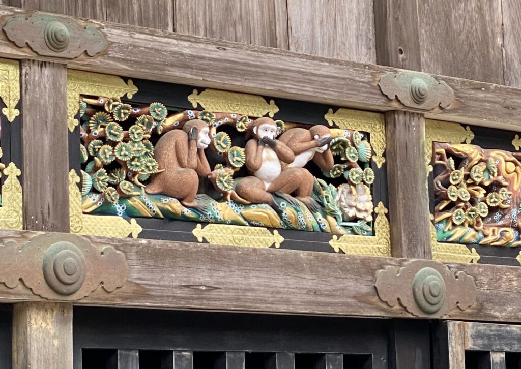 ここには「見ざる、言わざる、聞かざる」で有名な三猿の彫刻があり、幼少期には悪事を見ない、言わない、聞かない方が良いという教えが込められています。