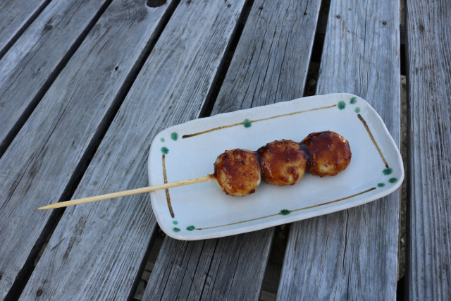 例えば、じゅうねん味噌の焼き団子(山本屋)いももち(そば処こめや)、そば団子や黒米入りきんつば(本家玉屋)など、どれも焼きたてを頂けて美味しいんです。